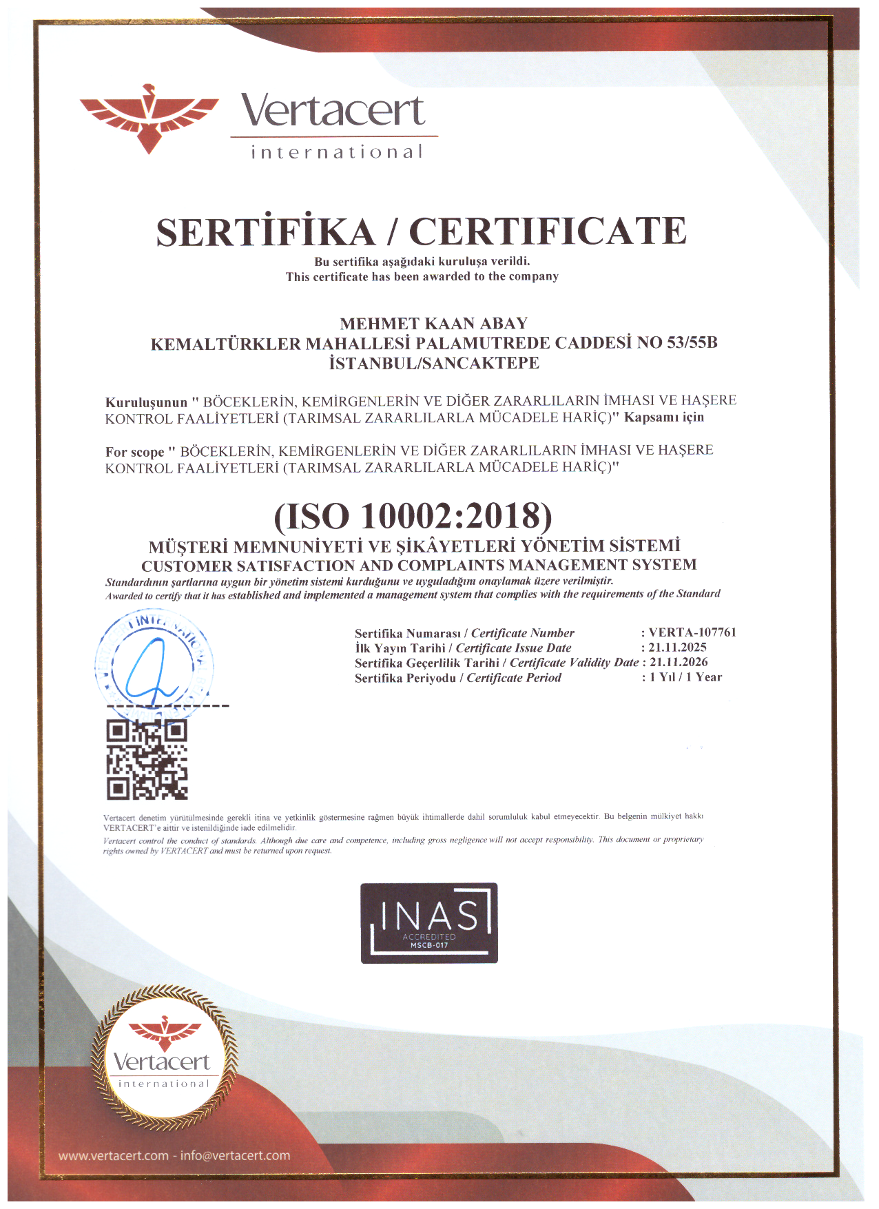 İSO 1002 : 2018 MÜŞTERİ MEMNUNİYETİ VE ŞİKAYETLERİ YÖNETİM SİSTEMİ SERTİFİKASI