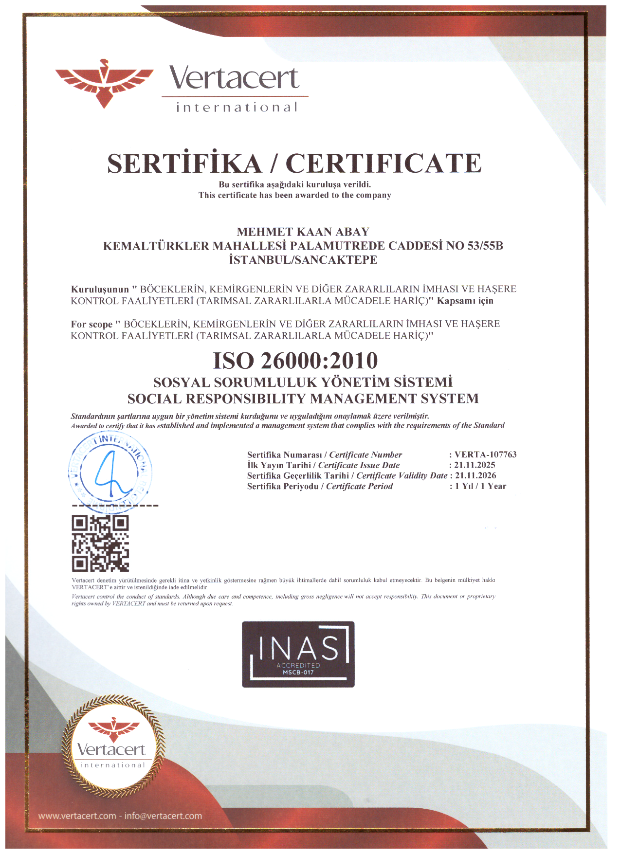 İSO 26000 : 2010 SOSYAL SORUMLULUK YÖNETİM SİSTEMİ SERTİFİKASI