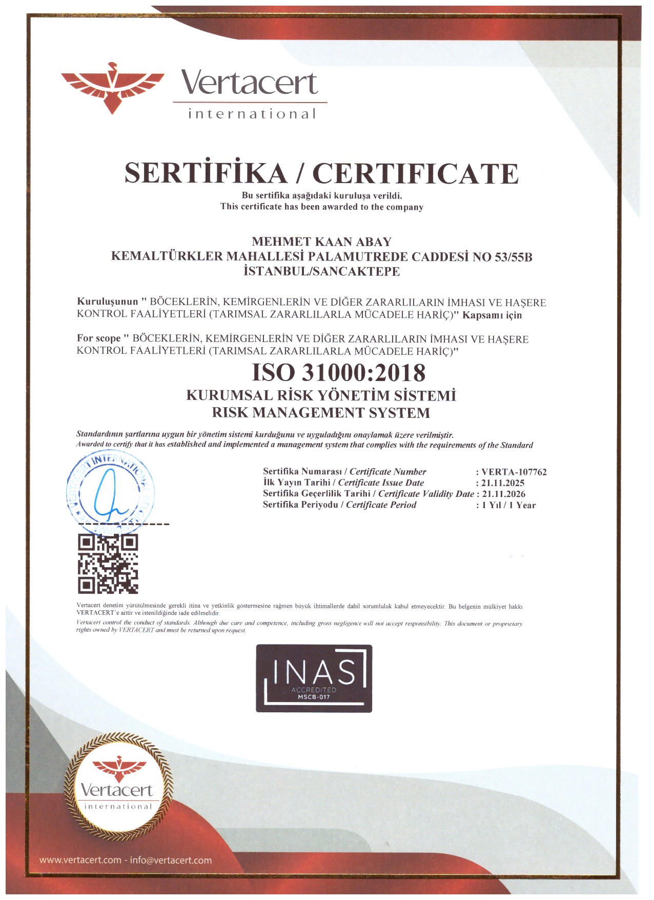 İSO 31000 : 2018 KURUMSAL RİSK YÖNETİM SİSTEMİ SERTİFİKASI